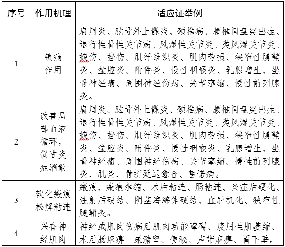 如中频电疗产品的作用机理为前面介绍的四种理论,预期适应证包含在表1内,且产品技术指标与本指导原则一般要求完全一致,则该产品属于列入《免于临床评价医疗器械目录》中的产品,申请人应按照《列入免于临床评价医疗器械目录产品对比说明技术指导原则》提供相应资料,证明产品的安全有效性。